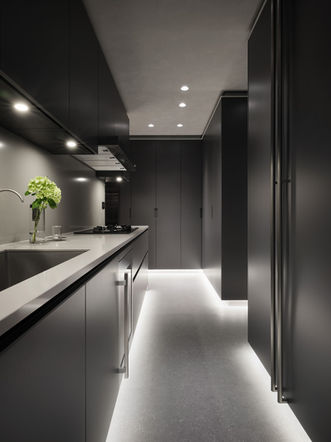 Contrast originates from two extreme sides, and two extreme sides come from infinity. This project is based on the proposition of "infinity" and "contrast" as the context. The design concept originates from the Italian "Infinity" marble table, a limited edition of only eight pieces in the world, and the 8th piece was purchased by the owner. This way, the design concept starts with "infinity" and "contrast" and continues throughout the space. At the entryway, the ochre red back wall with oriental furniture creates a stable tone and calms the visitor’s mind. In the corridor leading to the public area, the team used the design technique of spatial scaling, using marble to enclose the corridor, not only to delineate the area but also to enlarge the vision of the space as people move into the room. Upon entering the public area, unlike the oriental imagery of the entrance hall, the visual impact of western aesthetics greets us, quietly sublimating the artistic aesthetic of the space. Besides, the curved art paint ceiling and gray marble wall in the living room form a natural canvas. On the other side of the dining area, the "Infinito" marble dining table in green and sunken color is paired with fuchsia dining chairs, creating a visual highlight through contrasting colors. In addition, the indigo-colored roof outside the window creates a sense of inspiration in the space. In the private living area, to meet the privacy needs of the residents' personal space, two side passageways are set up to separate the bedrooms of different family members so that each can have the maximum privacy. The master and second bedrooms are decorated in different colors to create a personalized space. The master bedroom is decorated with a light gray pattern, while the second bedroom is decorated with contrasting colors of three primary colors. In addition, the double-sink basin in the master bathroom is uniquely cut out of a large piece of marble.