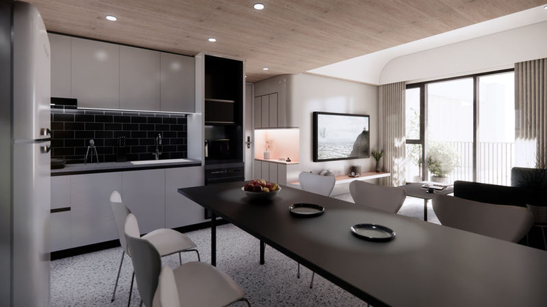 At ground level, the landscape is conceived as a river outlet. Meandering paths, native riparian planting, and integrated resting zones guide movement and encourage moments of pause, extending the architecture seamlessly into the terrain. Along the street, a permeable steel mesh façade paired with greenery softens the urban edge, fostering transparency and pedestrian engagement.