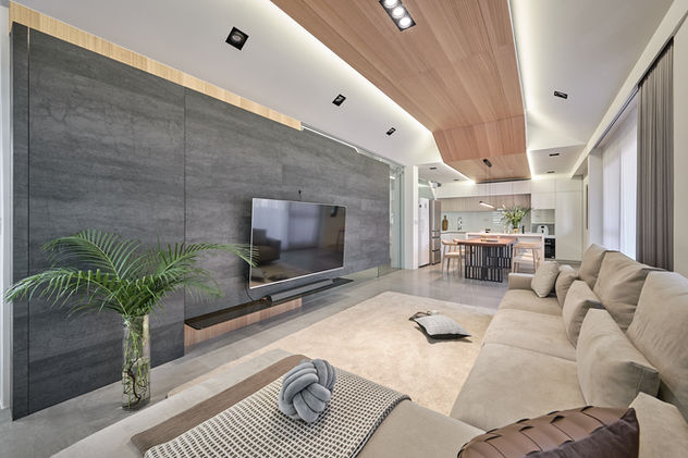 We constructed a unique "wooden slanted fold" and a "gabled vocabulary" above the living area. This design not only eliminates the oppressive feel of the structural beams but also reintroduces the iconic "roof symbol" of a traditional home into the interior. Through the warm texture of wood veneer, the cold architectural shell is transformed into a living vessel imbued with emotional temperature.