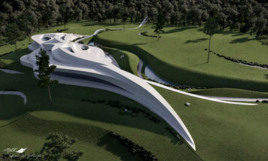 Rather than dominating the site, the building appears to emerge from the land as a natural extension of the terrain. It reflects a futuristic architectural vision rooted in biomimicry, fusing advanced technology with living geometry to create a structure that is both functional and alive.