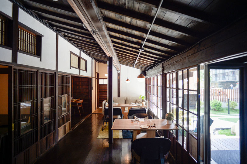 The design team employed a “restoration-as-original” approach to preserve the structure’s authenticity—repairing the original roof trusses, walls, and the iconic Hiroen veranda. Functional systems such as air conditioning, lighting, and accessibility ramps were discreetly embedded to ensure minimal visual disturbance while achieving harmony between utility and aesthetics. To accommodate operational needs, a new steel-framed structure with a sloped glass roof was added in the backyard to serve as a kitchen. Circulation was reoriented to guide entry from the side alley, transforming the courtyard into a transition zone where the old and new converge. At night, the glass volume glows like a lantern, illuminating the corner and creating a subtle urban landmark. Now, the space functions as a dining venue while also hosting exhibitions, lectures, and literary activities—ensuring the monument is not only preserved but actively inhabited. It exemplifies the philosophy of “preservation through activation,” offering a sustainable model for heritage revitalization.