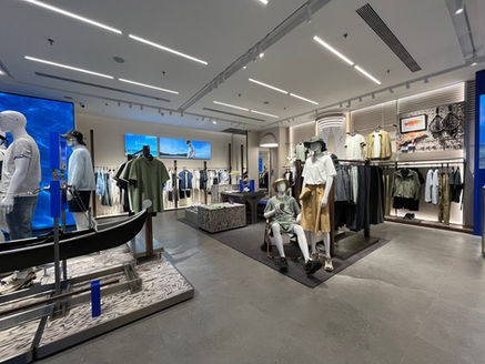 Unlike conventional apparel stores focused only on display and fitting, this space introduces modular micro-scenarios such as light cycling, hiking, beach, and camping. Each scenario immerses customers in the lifestyle connected to the clothing, shifting the experience from “seeing garments” to “feeling ways of living.”