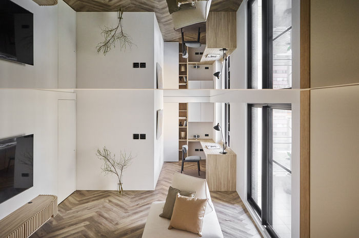 This project centers around the creation of a residence tailored for an urban woman. Given the constraints of limited floor area and ceiling height, the design purposefully departs from complex, layered forms. Instead, it embraces the principle of "breaking down the whole into parts" as its foundational strategy. To achieve this, the façade is thoughtfully integrated with the surrounding space, while visual layering and proportional adjustments work in harmony to convert the originally fragmented layout into a cohesive and fluid living area. Meanwhile, a unified material vocabulary is employed consistently throughout, enhancing the overall aesthetic. Furthermore, subtle variations in detail and carefully considered asymmetrical compositions introduce layers of depth within the design's simplicity. As a result, the residence embodies a restrained yet balanced spatial expression, inviting residents and visitors alike to experience the thoughtful interplay of space and form.